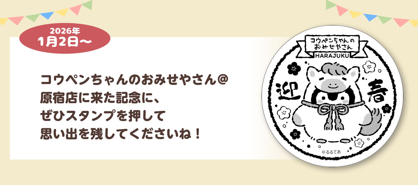 コウペンちゃんのおみせやさん@原宿店に来た記念に、ぜひスタンプを押して思い出を残してくださいね!