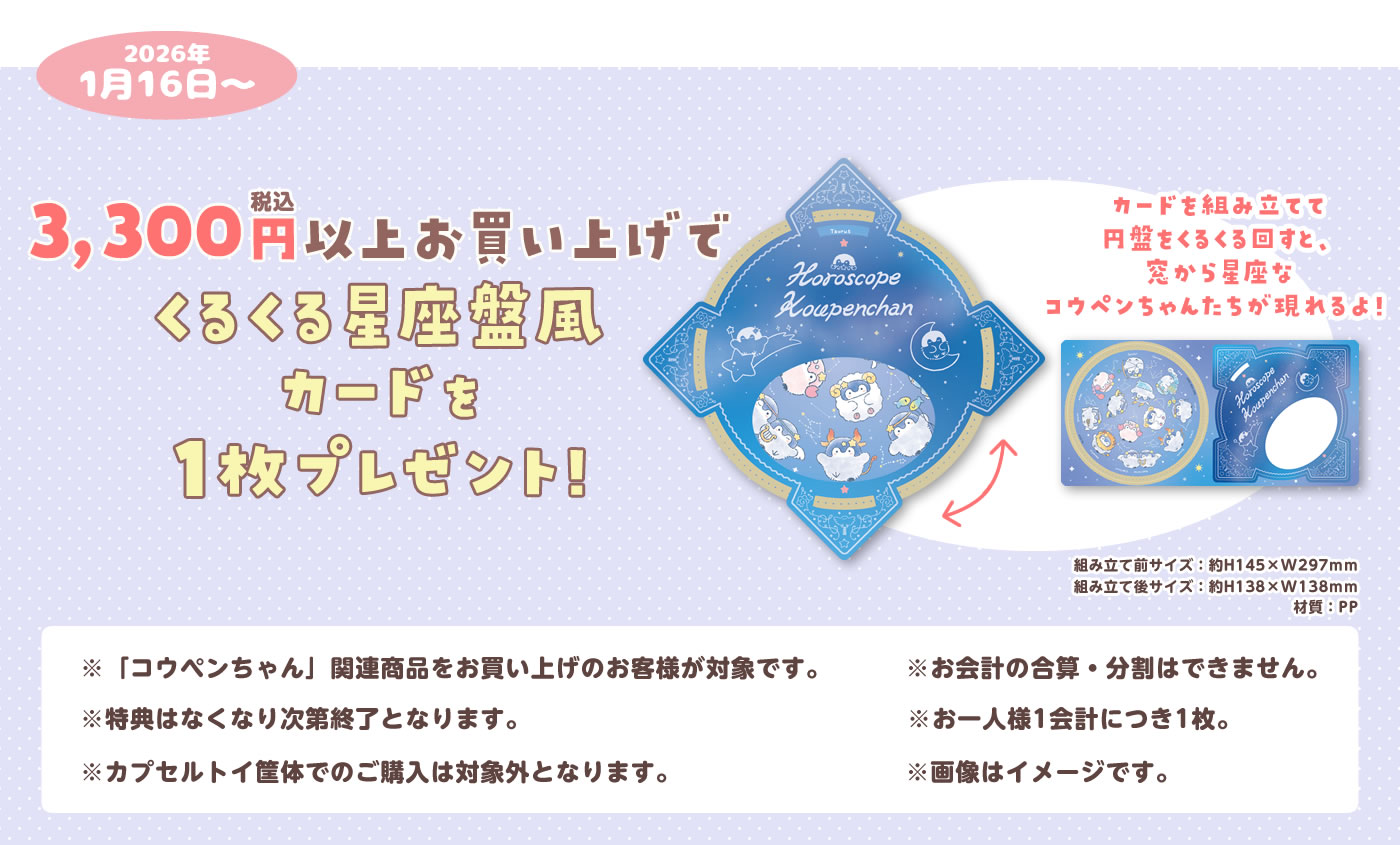 3,300円(税込)以上お買い上げで「くるくる星座盤風カード」を1枚プレゼント!